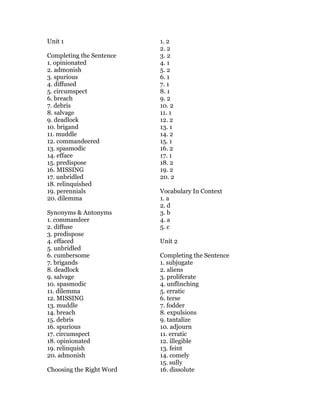 Read Online Vocabulary Level D Answers Unit 3 Doc